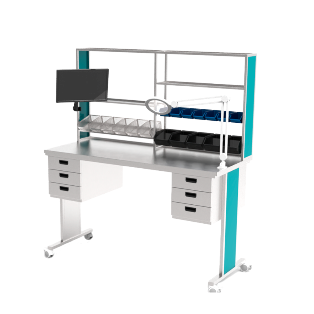 As Estações de Trabalho são bancadas modulares desenvolvidas para as áreas de preparo e embalagem nas Centrais de Material e Esterilização (CME) de hospitais e clínicas.