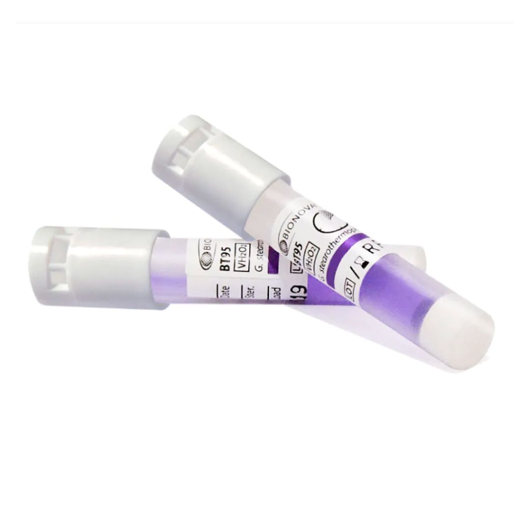 O Indicador Biológico é um teste com sistema de Leitura Rápida por fluorescência: Indicador Biológico autocontido para processos de esterilização por plasma ou vapor de peróxido de hidrogênio.. Possui uma população ativa do microrganismo Geobacillus Stearothermophilus (ATCC 7953) ≥ 106 esporos por ampola.