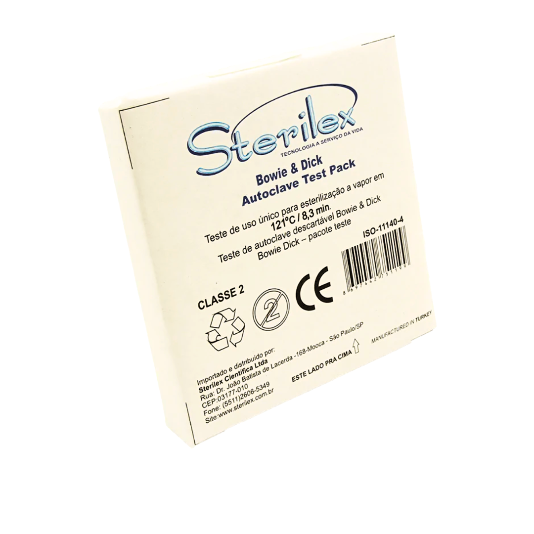 O Pacote Teste Bowie&Dick é um teste pronto uso, desenvolvido para verificar e detectar gases não condensáveis e bolhas de ar em autoclaves com bombas de vácuo, no ciclo de esterilização a vapor. Contém um reativo químico atóxico, com apresentação em folha-teste.